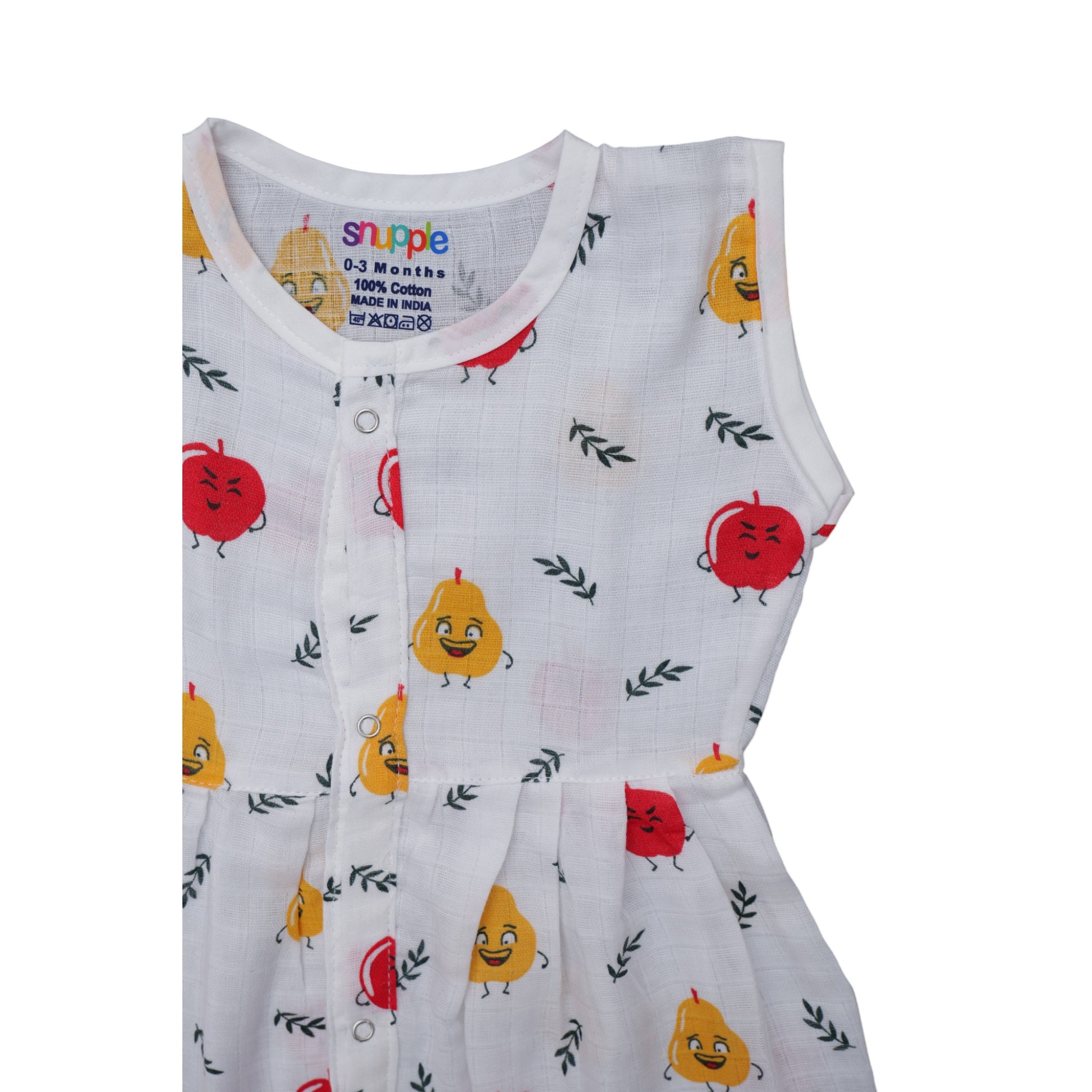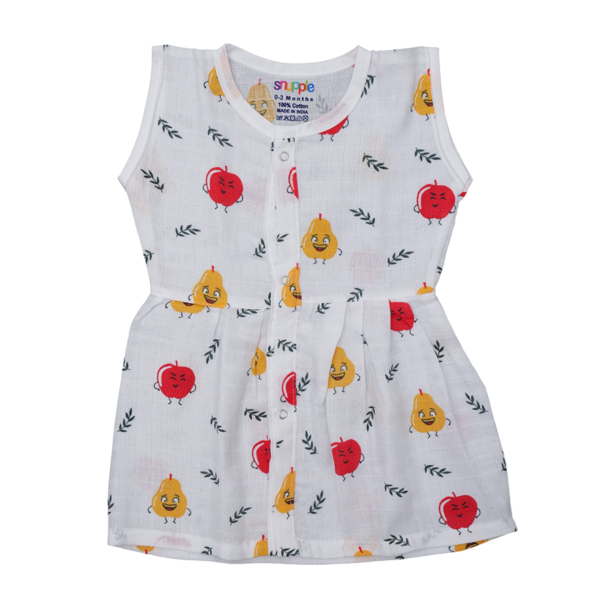 Muslin Cotton Baby Frock – Soft, Breathable Summer Wear (fruits Design) 0-12 Months